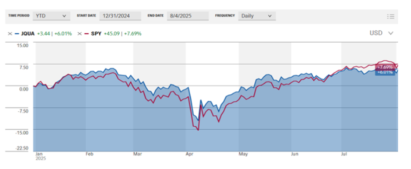 Its performance is competitive with SPY, and in periods of market stress, JQUA has offered better downside protection (see chart below for reference).