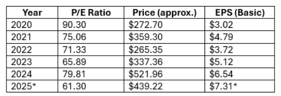 *2025 data is as of today with mid-year earnings estimates