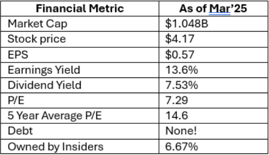 Another interesting fact: its Enterprise Value (EV) is actually lower than its Market Cap. Since EV = Market Cap + Debt – Cash, and the company has no debt, this implies that an investor could theoretically acquire the company for less than the value of its assets — an interesting scenario.
