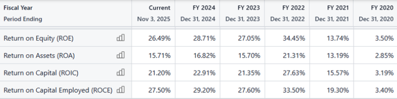 These ratios clearly reflect the management’s strong operational discipline and efficiency — a sign of a well-run company.